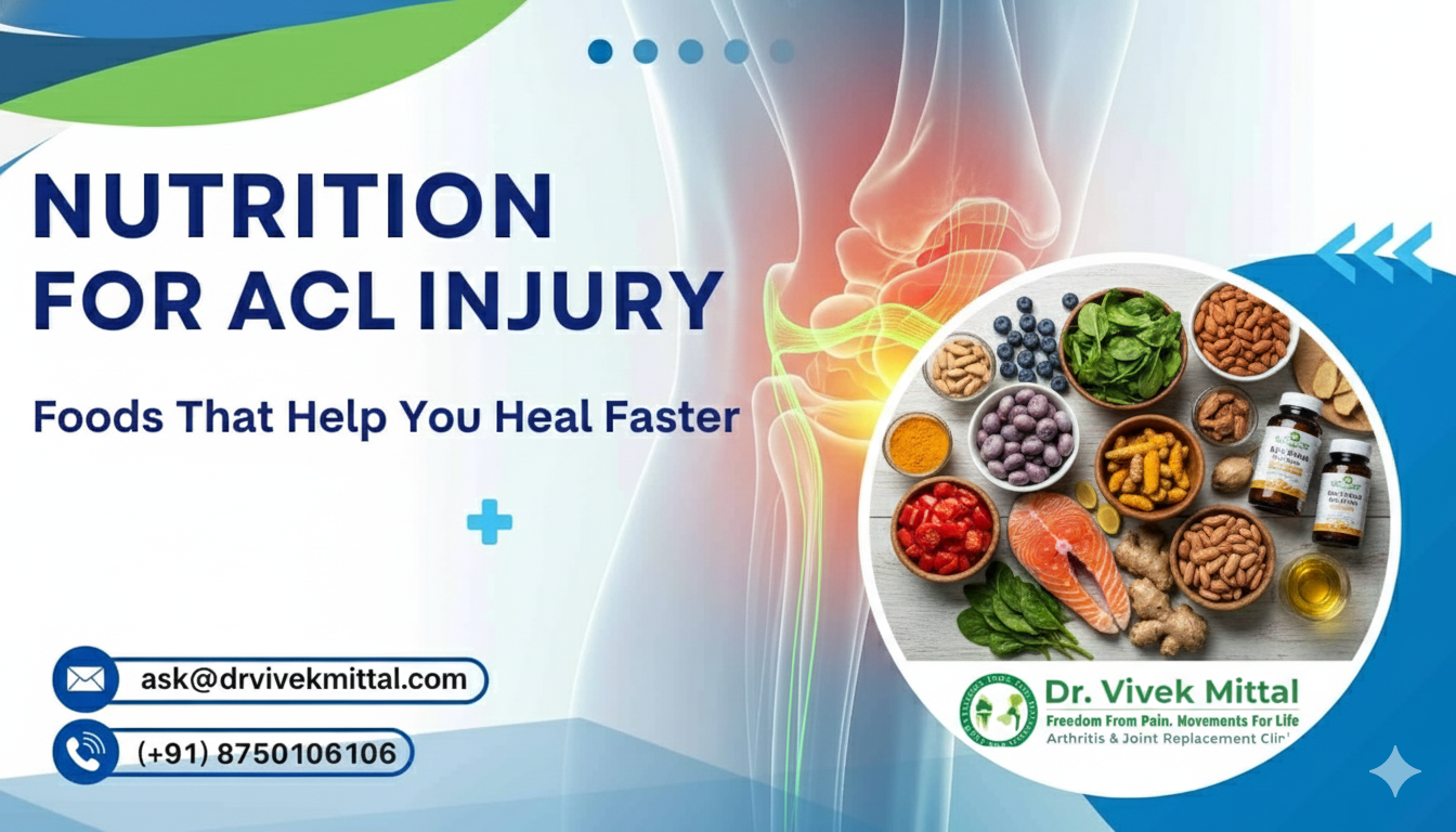Here’s a complete guide on Nutrition for ACL injury recovery, explained with insights inspired by leading arthroscopy and sports injury expert Dr. Vivek Mittal